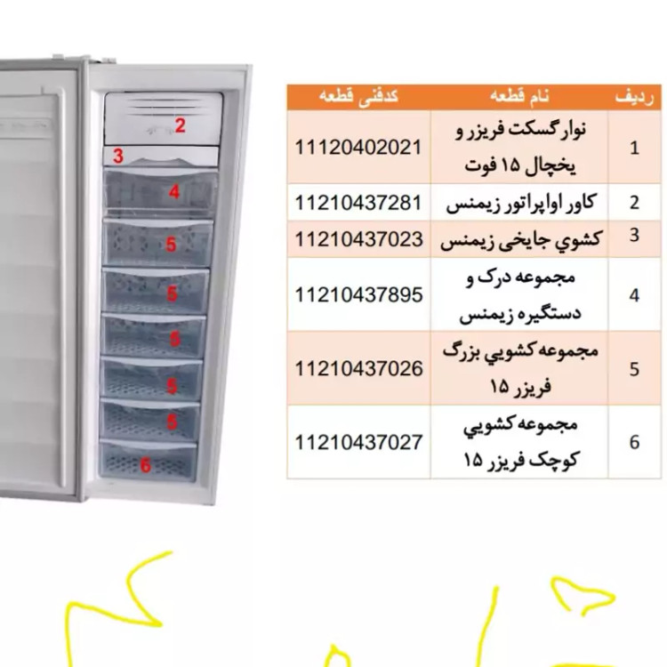 درب کشو فریزر امرسان( 15 فوت و سامی 46و طبقه اول فریزر 10فوت)